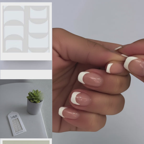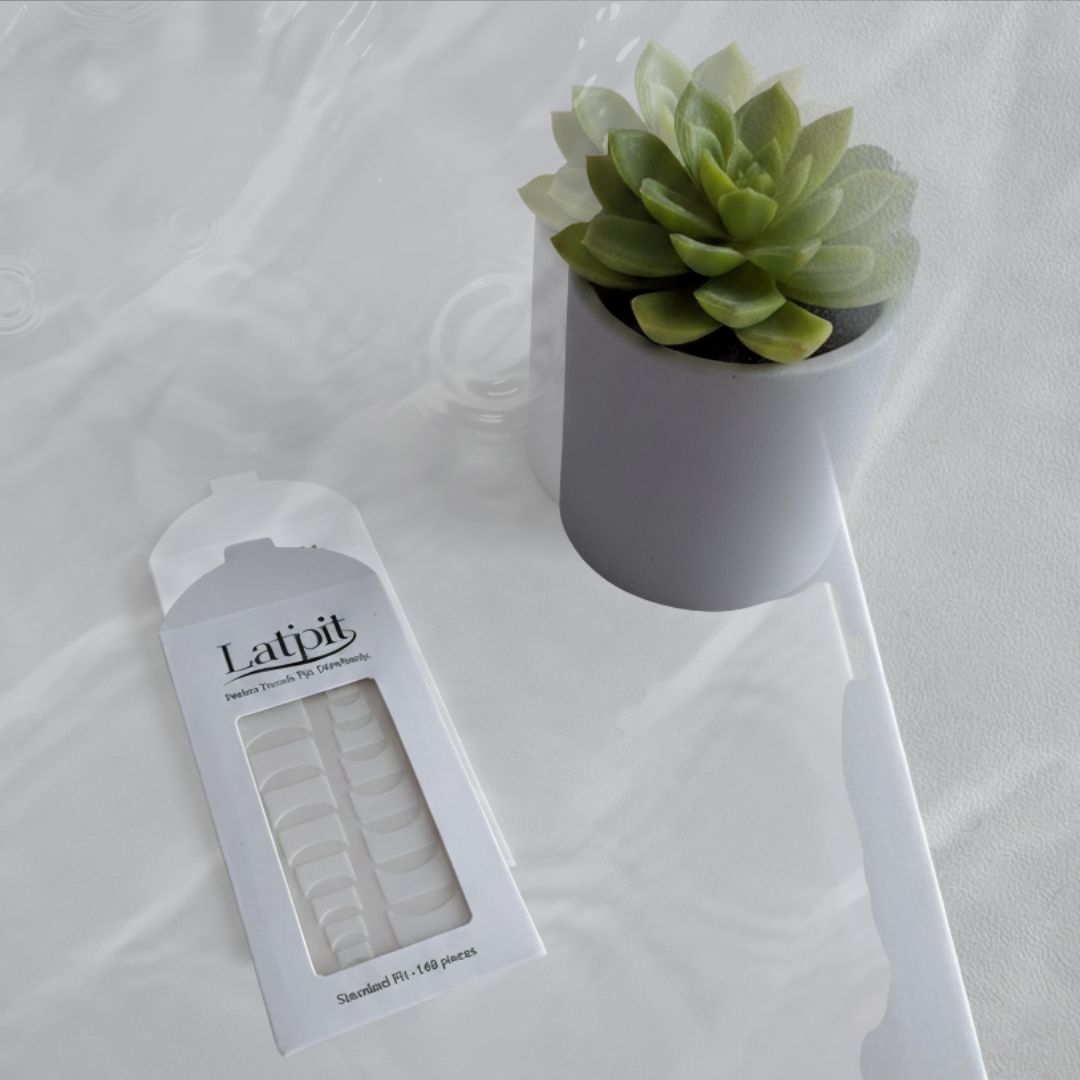 Each LaTipit package includes 160 white French tip strips in a mix of half-oval and half-crescent shapes, carefully sized to fit a wide range of fingernails.